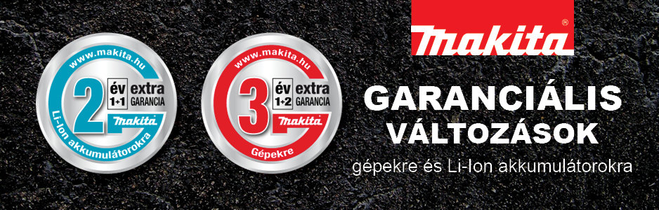 2 ÉV EXTRA GARANCIA a MAKITA LI-ION AKKUMULÁTOROKRA (AKKUMULÁTOR TÖLTŐRE NEM ÉRVÉNYES!) 2016. november 1-től az internetes regisztrációval elérhető extra garanciát, a gépek mellett a Li-ion akkumulátorokra is kiterjesztettük. Az extra garancia gépek esetében a regisztrációt követően 1+2 = 3 év, a Li-ion akkumulátoroknál az eddigi regisztráció nélküli 1 évről 1+1, azaz 2 évre módosulhat. 3 ÉV EXTRA GARANCIA a MAKITA és DOLMAR gépekre! Internetes regisztráció esetén a 3 év garancia érvényes minden Makita és Dolmar gépre! Tekintve, hogy gépeink magas minőségű anyagokból, majd' 100 év tapasztalatával készülnek és minden egyes termék minőségellenőrzésen esik át cégünk a kötelező 1 év helyett 3 év garanciát vállal. Ön így biztos lehet abban, hogy termékünk vásárlása esetén hosszú ideig nem lesz gondja vele! ELEKTROMOS GÉPEK Előfordul, hogy a nem megfelelő felhasználás, a használati útmutatóban foglaltak hiányos betartása miatt meghibásodik a termék. Ezekben az esetekben nem jár a garanciális javítás és Ön bosszús vagy csalódott lehet. Mi ezt megértjük és ezekre az esetekre vezetjük be az EXTRA garancia szolgáltatásunkat. Az EXTRA garancia szolgáltatás keretén belül akár ingyenesen, vagy rendkívül kedvező áron vállaljuk azon elektromos kéziszerszámok javítását, amelyek meghibásodása nem garanciális. Ez természetesen nem mentesít a megfelelő gépválasztástól és használattól, de ha megtörtént a baj, mi segítő jobbot nyújtunk! KERTI GÉPEK A MAKITA illetve a DOLMAR kerti gépekre 3 év garanciát vállalunk. A garancia a gyártási és a szerelési hibákra vonatkozik, az irreális túlterhelésből, a kenési elégtelenségből, nem megfelelő tartozék használatból, stb eredő meghibásodások nem. Kerti gépeink a következő termékcsoportokban találhatók: sövényvágók; szegélynyírók, fűkaszák; fűnyírók; láncfűrészek; egyéb kerti gépek. A termékek teljes listája elérhető a www.makita.hu oldalon. A 3 év EXTRA garancia szolgáltatás feltétele a gépnek a vásárlást követő 4 héten belüli regisztrálása a regisztrációs oldalon. Fontos! A Makita és Dolmar típusú gépeket szerződött partnereinktől javasoljuk beszerezni, mert a gépregisztrációt csak ebben az esetben tudjuk garantálni. Partnereink között település alapján a Segítség menüpont alatt a Partnerkeresőben lehet válogatni. A 3 év EXTRA garancia nem vonatkozik az alábbi esetekre: - nem rendelkezik a Makita Kft által kiadott jótállási jeggyel